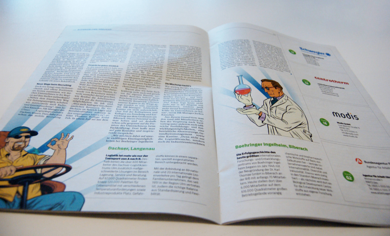 In der Zeitungsbeilage wurden teils redaktionelle Themen rund um die Jobsuche und die Messe behandelt, den Großteil davon machten allerdings die PR-Porträts aus, die jeder Kunde zur Messestandbuchung dazu bekommt.